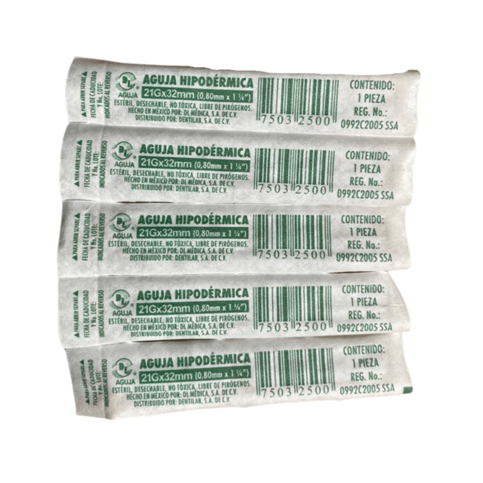 Agujas hipodermicas de 21G x 32mm (0,80mm x 1 1/4)