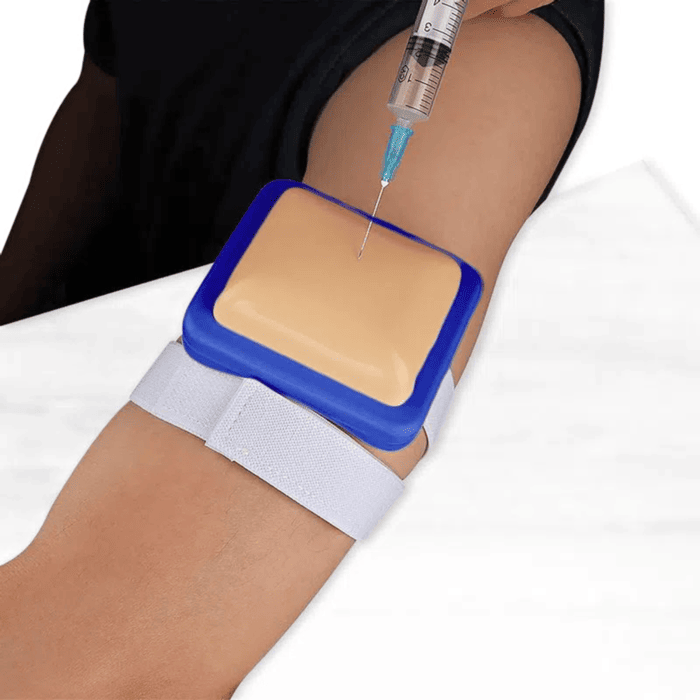 - 3 capas: Silicón, esponja y plástico (Epidermis, Dermis, Subcutáneo) que simulan las capas de la piel.