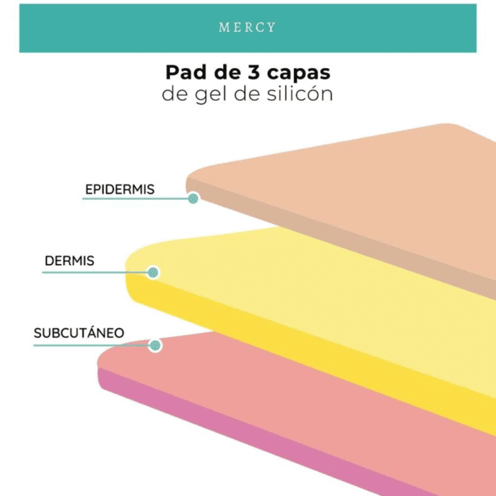 - 3 capas de gel de silicón que simulan las capas de la piel (Epidermis, Dermis, Subcutáneo).
