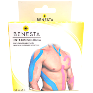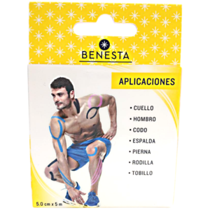 Cinta kinesiológica para rehabilitación muscular y lesiones deportivas.