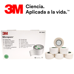 • Cinta quirúrgica microporosa de color blanco hipoalergénica.