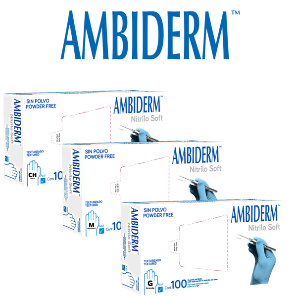 GUANTE DE NITRILO NO ESTERÍL COLOR AZUL TALLAS CH-MED-GDE AMBIDERM cantidad