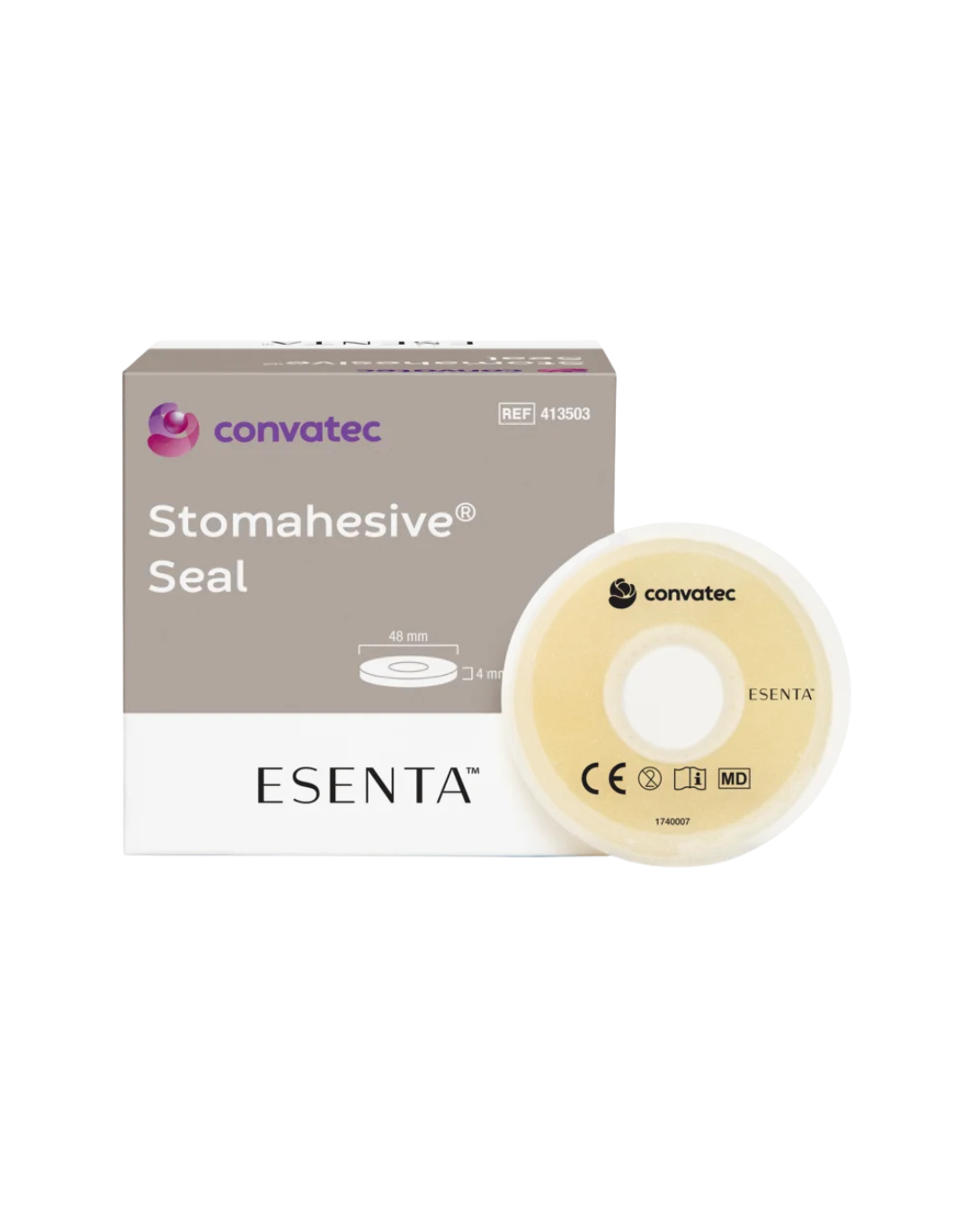 Stomahesive Seal es una barrera cutánea moldeable hidrocoloide, absorbente de la humedad, diseñada para ayudar a proteger la piel del contacto con fluidos corporales. Puede moldearse, enrollarse, estirarse o comprimirse para ajustarse alrededor del estoma, así como también puede cortarse.